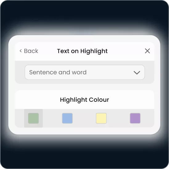 Users can adjust the settings to have words and/or sentences highlighted as they are read aloud.