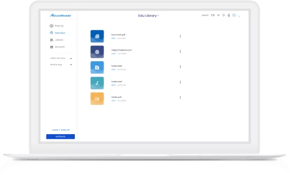 Students will have a personal email-based account through which they can access our Online Reader, Chrome Extension and Mobile Application. One personal account connects all applications and creates a library of recordings. Students can listen to uploaded text and documents with the apps and listen to websites directly with the extension using our high-quality text-to-speech voices.